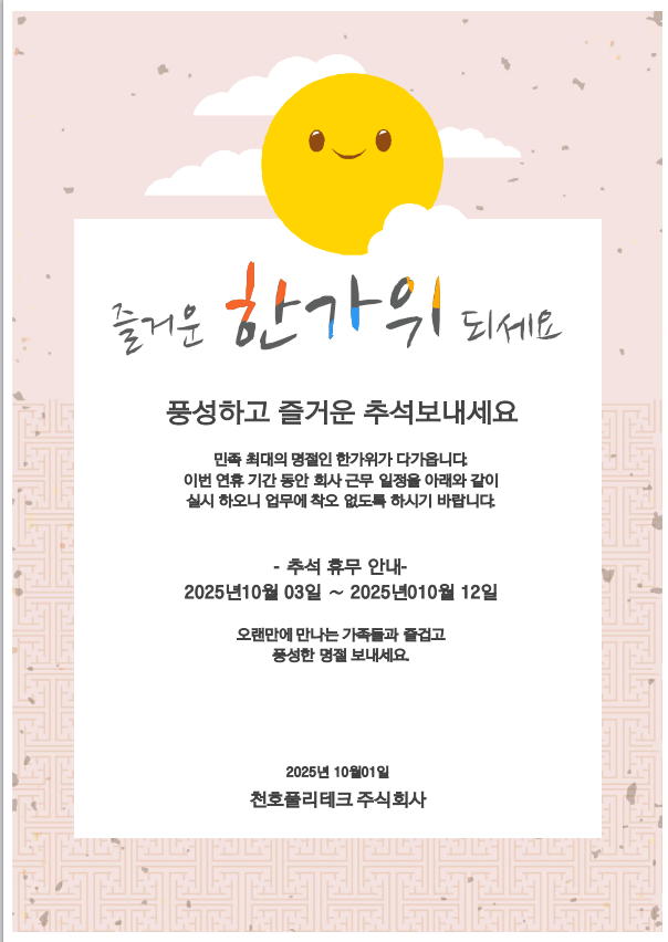 2025년 천호풀리테크 (주)-하계휴가 기간 안내